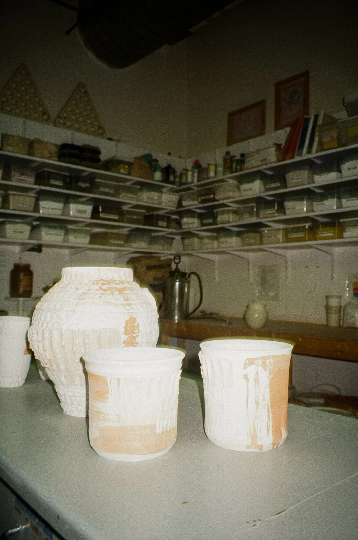 So great to be back in the studio! This week was hectic as hell. I think getting used to the schedule of being back in class as well as working two jobs full time has been a big adjustment. I didn’t get as much physical work done as I would have liked but I didn’t get a big batch of clay mixed and began researching different historical vessel shapes. I made a little plaster mold of Mia's necklace over the summer and was able to get the first cast out of it and I think it turned out great. I would like to incorporate more handmade stamps and texture adding things being either plaster of bisque stamps. I worked on my semester plan and went on some walks when I had time. Had a great wood firing over the summer which was a blast! Makes me eager for more firings to come.