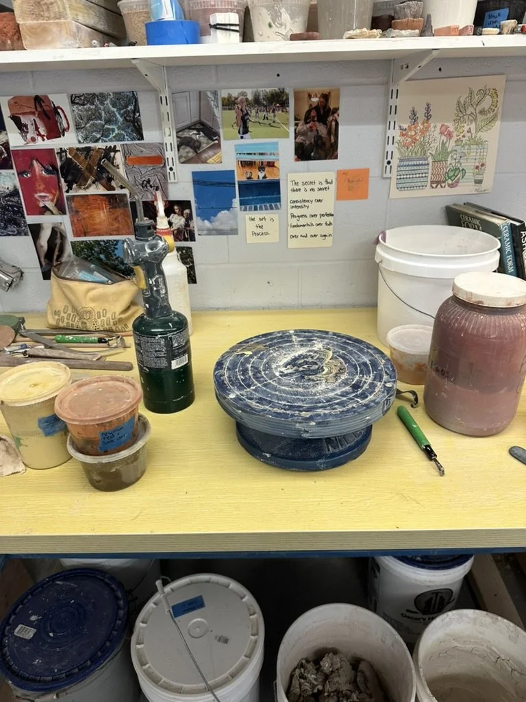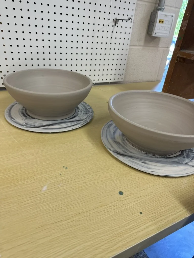 I started this week with throwing with some friends. I had some coworkers that wanted to learn so I spent the off day teaching them. I threw 2 big bowls for my boss who wants some for catering gigs. Then Monday night we had the new post baccs over for dinner and ice cream which was nice to get to know everyone better. Tuesday we had class and reviewed half of the semester plans. I didn't have time for much else in class, but it was nice to get feedback on my semester plan and hear some of what other people are planning and thinking. Wednesday I had work and wasn't able to make it into the studio. I am hoping to get Thursday off soon so I can have a better work school balance. Thursday we went over everyone else’s plans and it got me thinking about my own work. I just pinched some cups during class time to have some practical test tiles for the semester. I am thinking a lot about slip applications and building up the texture of my work more. I worked the rest of the weekend so had lots of time to think about what I am doing with my work this semester and am hoping to spend all day Tuesday in the studio to get started on some of these ideas.