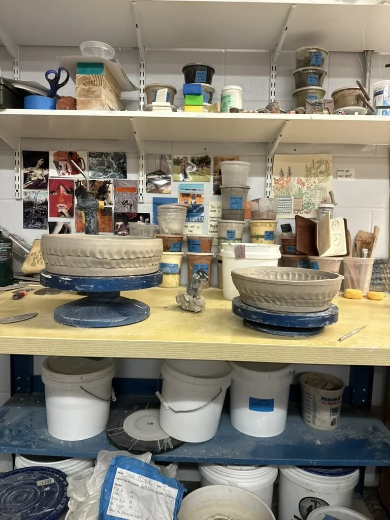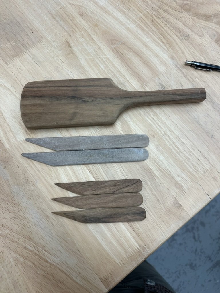 I was driven back to Louisville on Monday, which was a little dicey because of all the ice and snow on the roads. I had missed teaching the first class of my six-week course, so I wanted to make it back to meet my students and get started, etc. I was back to normal after the injections for the most part. Luckily, we didn't have class on Monday due to the snow, so I didn't have to miss anything else. I was able to get back into the studio on Wednesday and made my paddle and some smaller wooden tools. We still didn’t have class due to the snow, but was happy to be back and get a little something done. I ended up quitting my job due to my back and to just take some time to heal. I got back in the studio feeling better each day and was able to start the base of two new pieces. Mia and I did some furniture shopping, and we went antiquing, which was really fun. I am trying to give myself time and not push too hard right now, which is hard for me.
