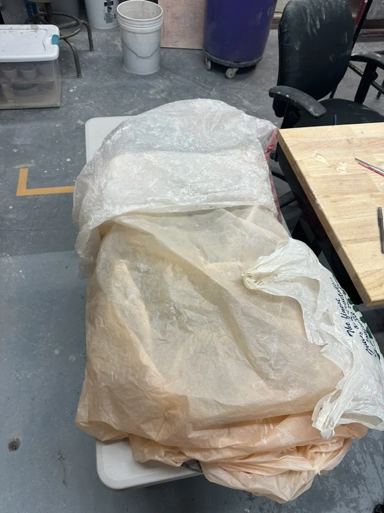 Monday I went to the studio after pt and threw all day. It’s the last day I have to get everything thrown for the market coming up this month. I was pleasantly surprised and got everything thrown that I had on my list with the help of Mia of course. I forgot to take pictures when it was all out but got it all wrapped up and hoping to trim sometime next week. Tuesday I had to miss class because of training for my new job that I couldn’t miss and then I was out of town Wednesday- Friday. Obviously didn’t have any time in the studio but got a lot of sketches and thoughts down on paper while in the car. Saturday morning I had another day of training for work and finished up around 4 so was able to go out to the studio after to check on how all the thrown work was drying and was able to trim half of it. As well as work on my amphora a little more. Sunday I have work so I won’t be back in the studio until Tuesday. Overall a good week for not being in the studio as much as I would have liked.