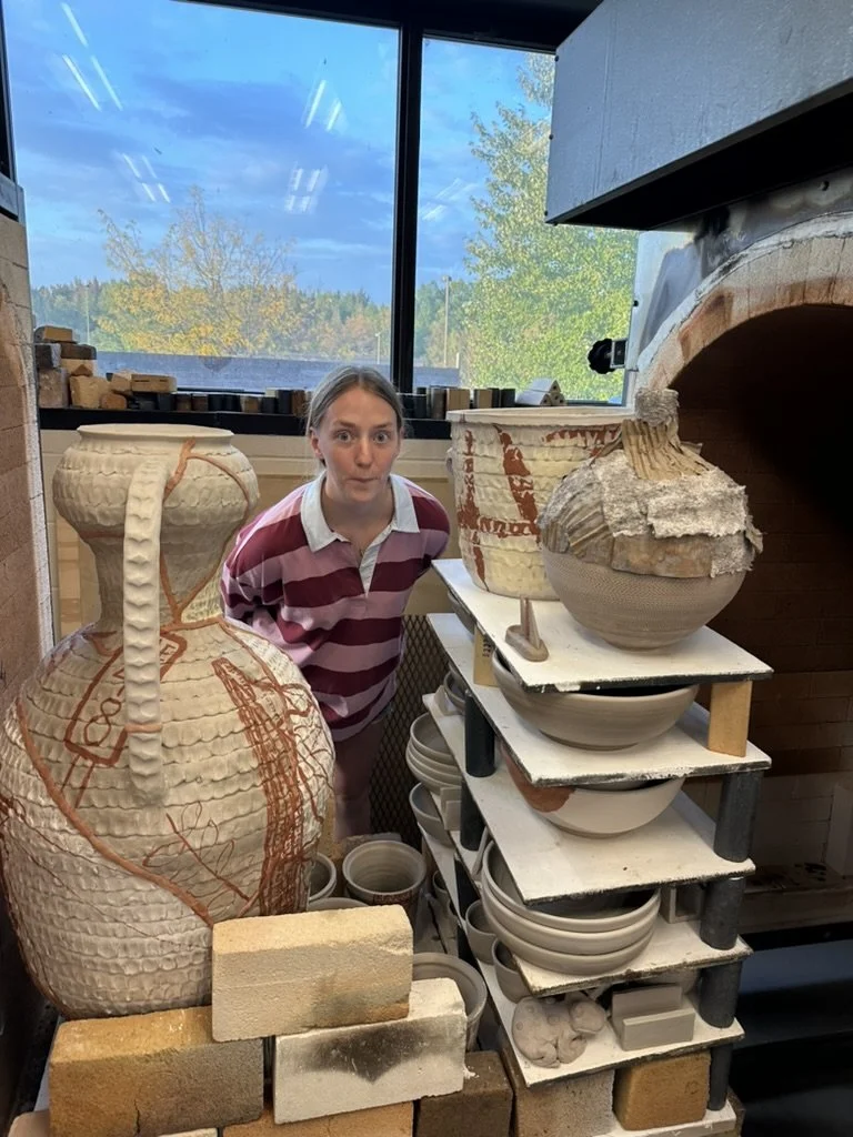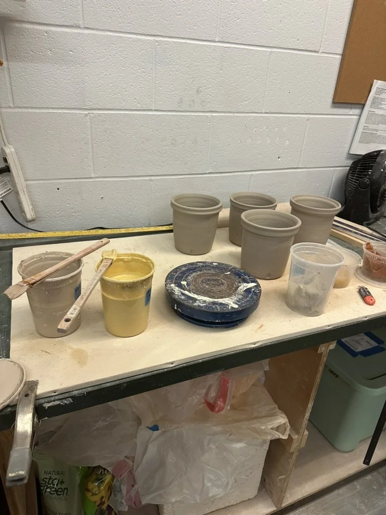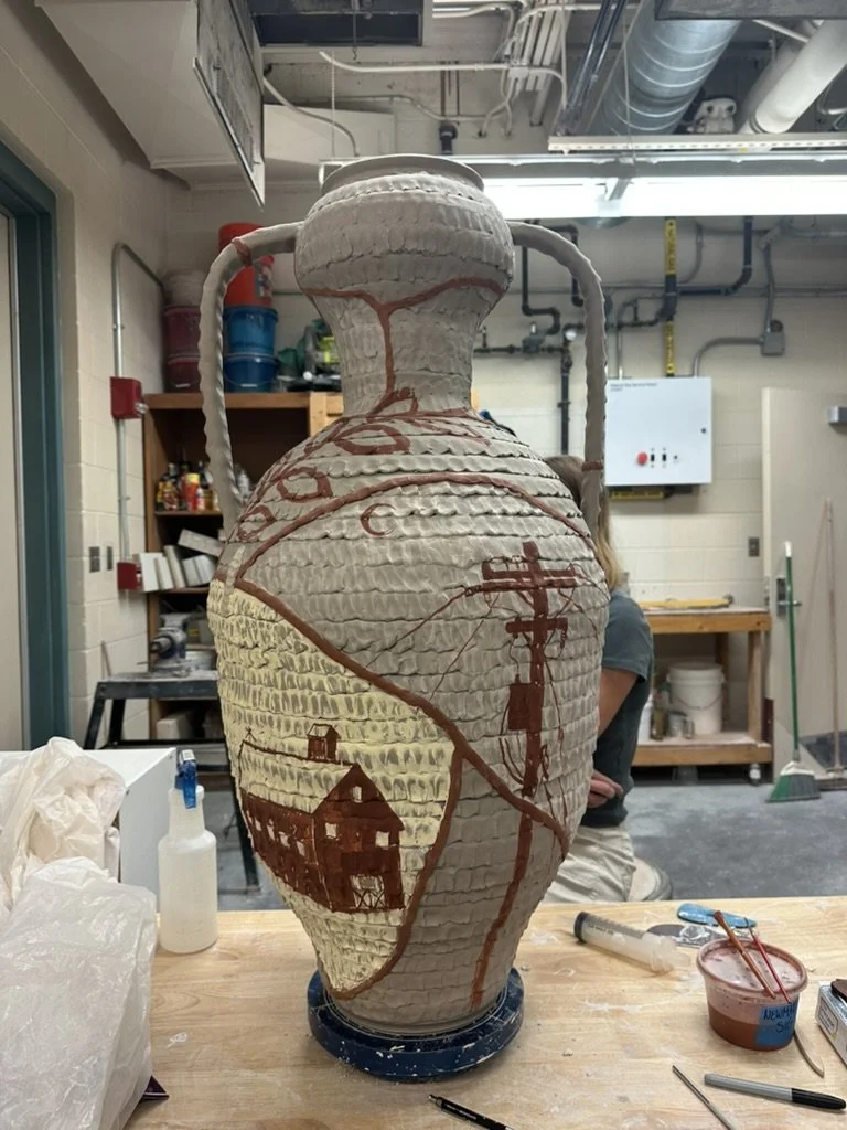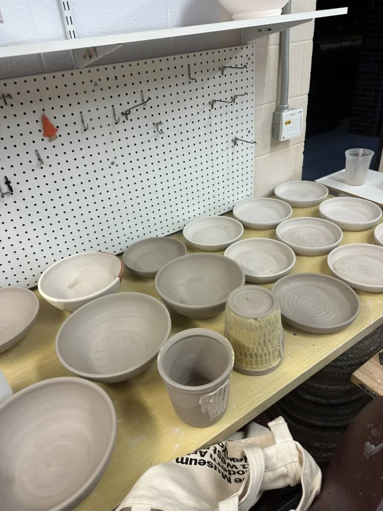 Started a new job this week! Life has been so crazy and busy recently! Luckily had Tuesday off so after class I spent the rest of the day trimming and slipping all of my pieces for the market. I ended up doing a couple more images on the amphora and then left everything out that night partly covered to dry slowly. Wednesday I was off again because of my schedule change so we knocked out some much needed errands and then went to the studio and mia helped me load the bailey as well as get some pieces submitted for the juried show. I had work before class on Thursday and then headed to the studio for class. Brian helped me write a schedule for the bisque that would help fit my schedule best. It took an embarrassing amount of time to figure one out that would work. Luckily Hailey is the goat and was able to come in at the end of the firing on Friday to shut the kiln down for me. Friday was the grand opening of the restaurant im working at so that was a blur of a day. And after work Sunday went out to the studio to unload and glaze all of the work for the soda.
